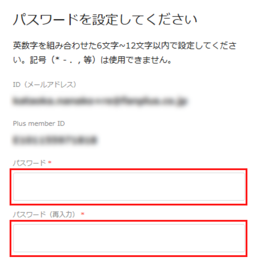 - 初回ログインでは「Plus member ID」「メールアドレス」では認証できません。必ず「会員番号」でログインしてください。